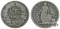 Technische Daten der 1/2 Frankenstücke: 1850, 1851 2.5 g., 0.900 Silber Dm 18 mm; 1875-1967 2.5 g., 0.835 Silber Dm 18 mm; 1968-heute 2.2 g., Ku/Ni Dm 18 mm. 1/2 Franken Silber oder Kupfer/Nickel - auf numisauktion.ch