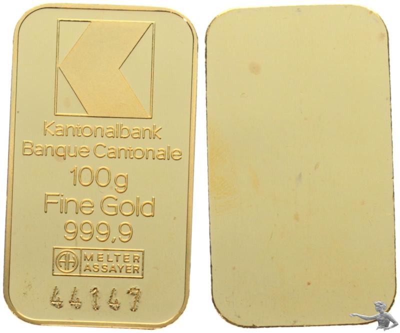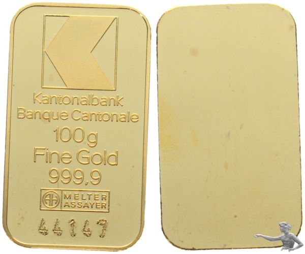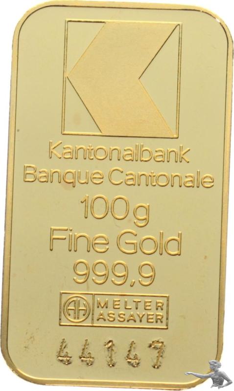 100 Gramm 999.9 Goldbarren - Kantonalbank - 44147