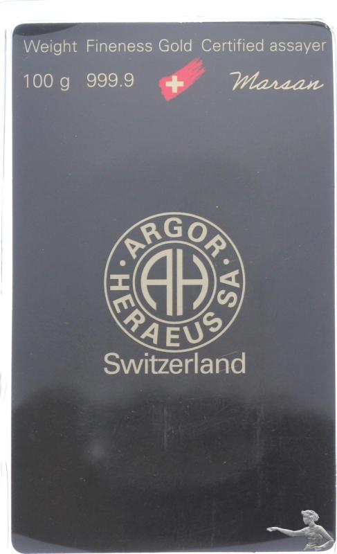 100 Gramm Argor SA 999.9 - 100 Gramm Feinsilber Switzerland