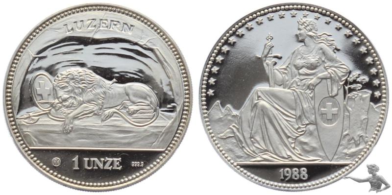 1988 Luzern Löwendenkmal - 1 Unze Feinsilber 999