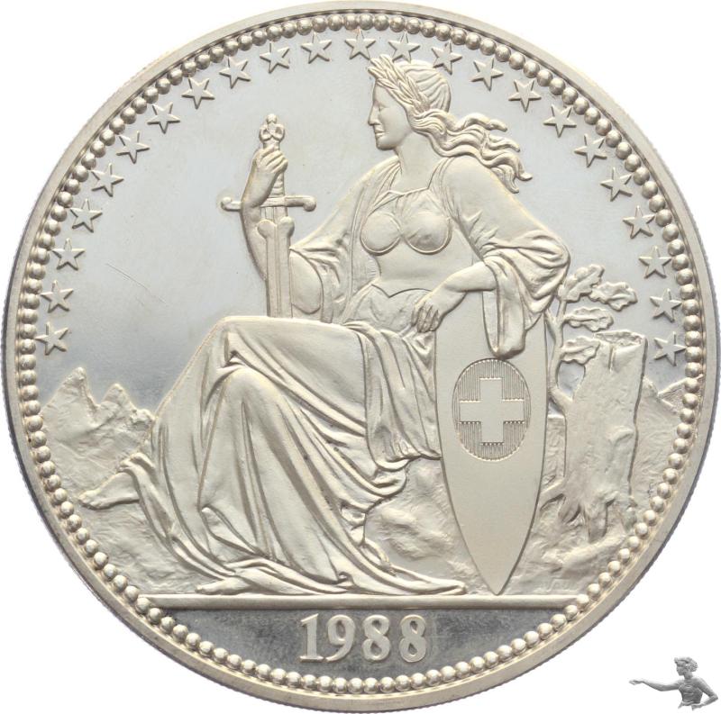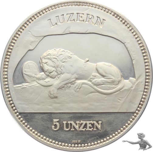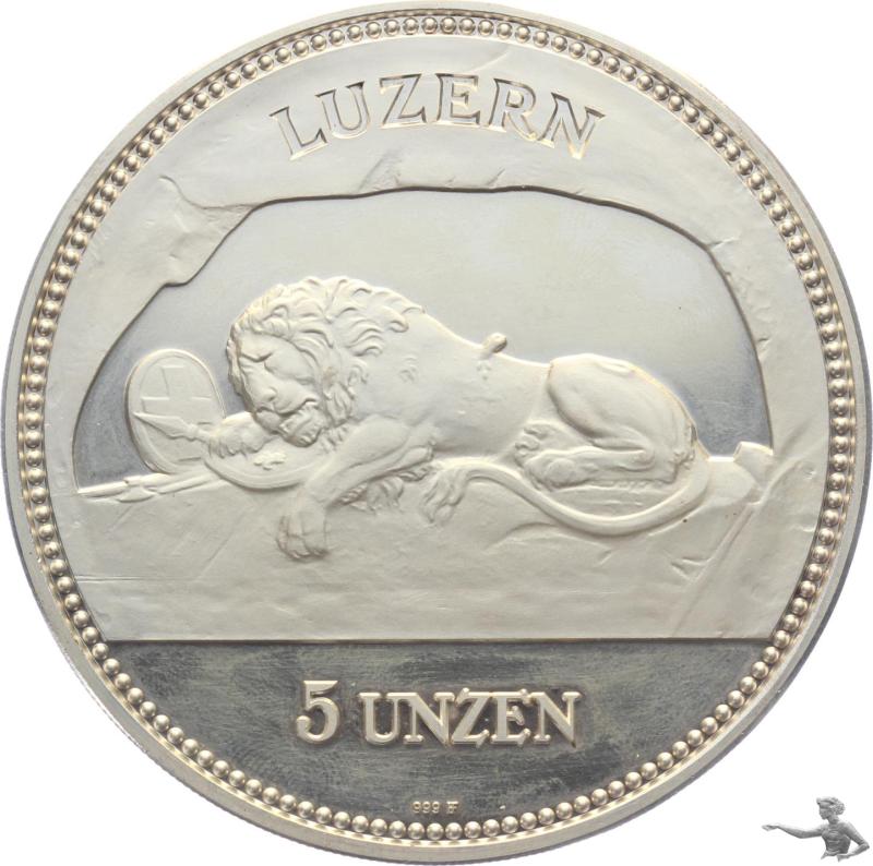 1988 Luzern Löwendenkmal & sitzende Helvetia - 5 Unzen 999 Feinsilber