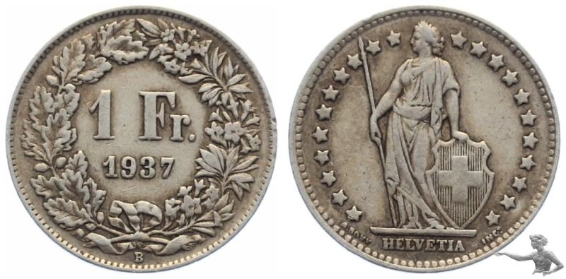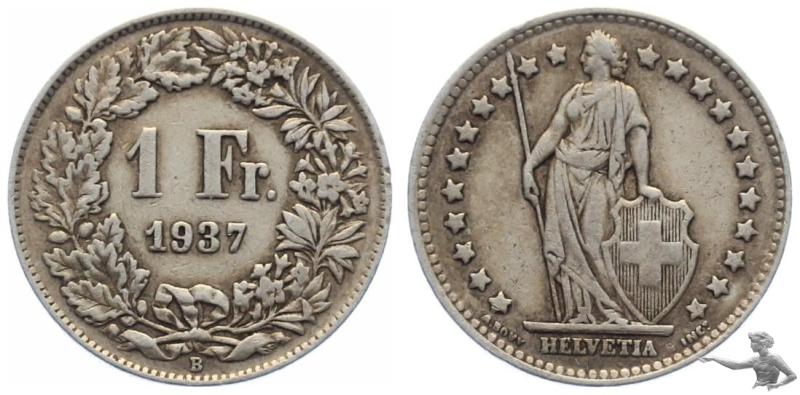 1 Franken 1937 - Eidgenossenschaft Silber