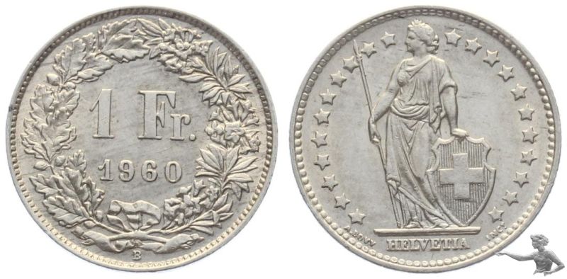 1 Franken 1960 - Eidgenossenschaft Silber