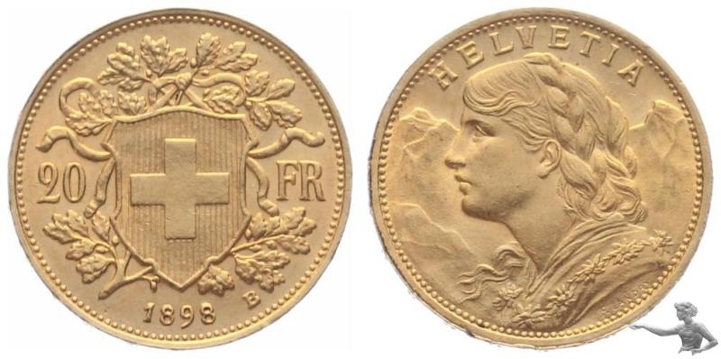 20 Franken 1898 B Gold Vreneli Goldvreneli