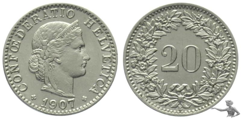 20 Rappen 1907 B ------------------------------ Prachtexemplar !!!