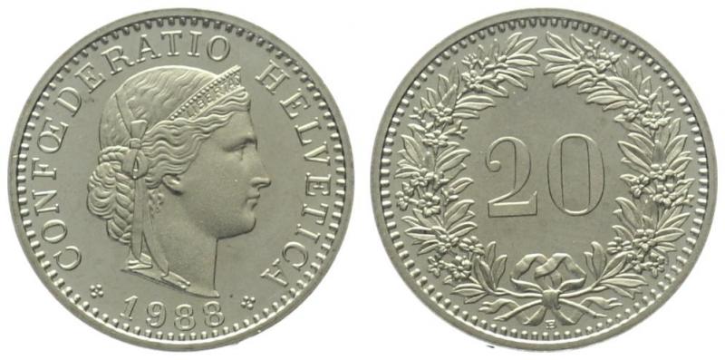 20 Rappen 1988 B ------------------------------ Prachtexemplar !!!