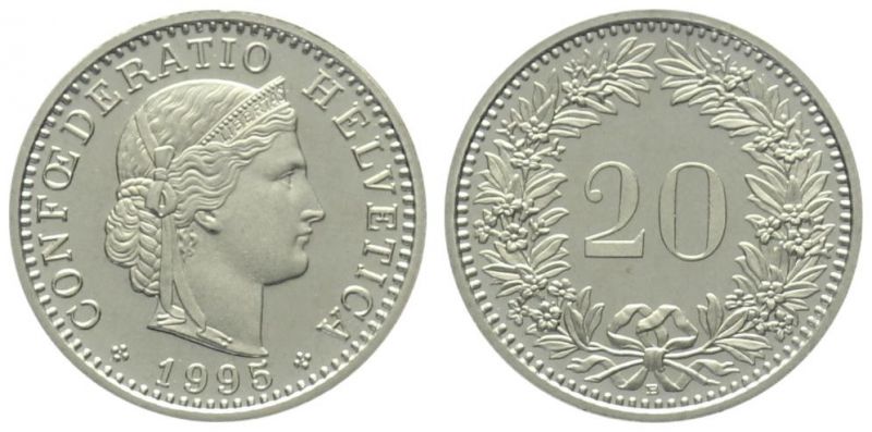 20 Rappen 1995 B ------------------------------ Prachtexemplar !!!