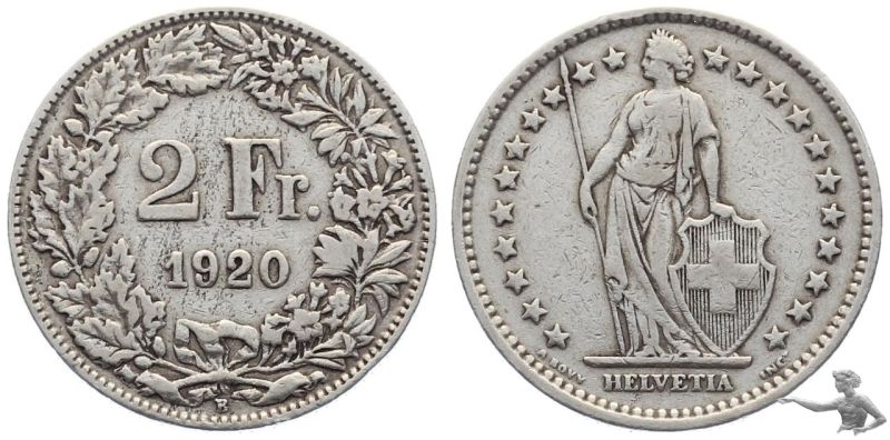 2 Franken 1920 B - Silber