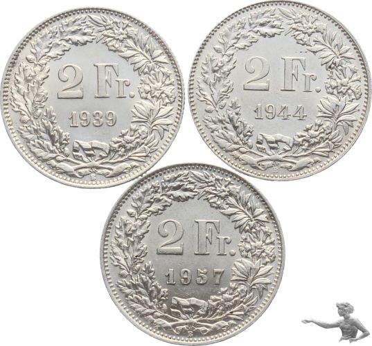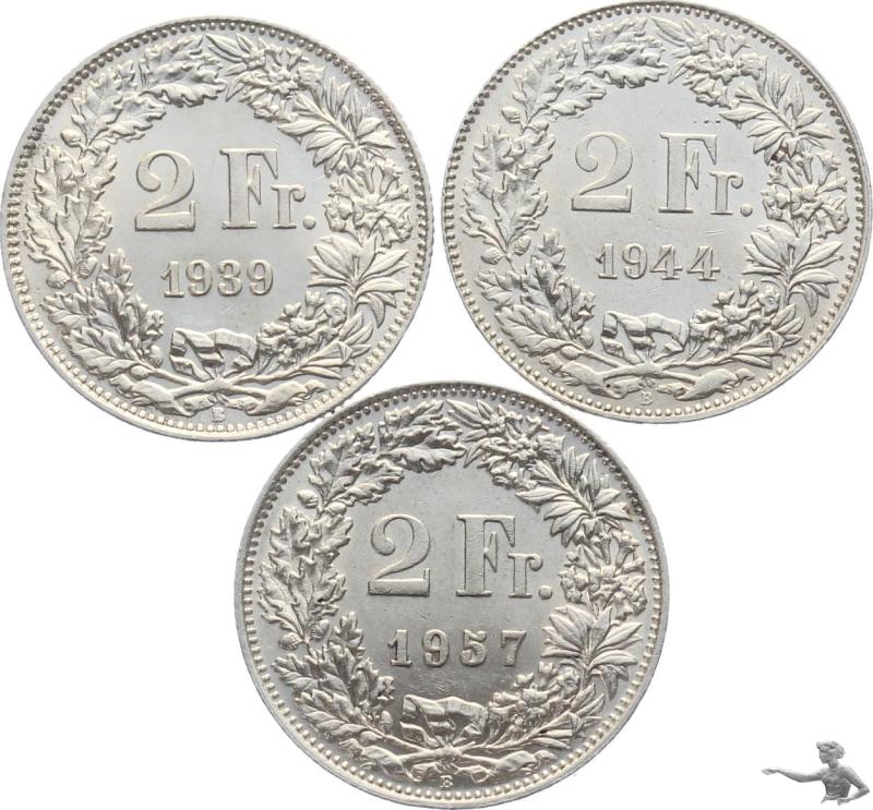2 Franken 1939 + 1944 + 1957