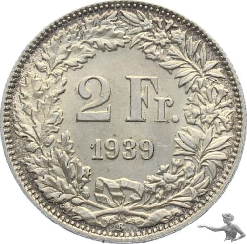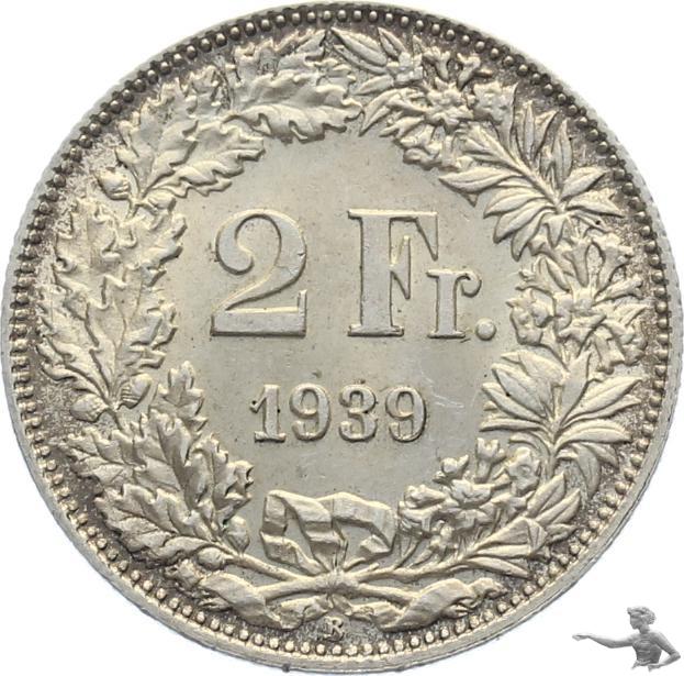2 Franken 1939 B - seltene Qualität