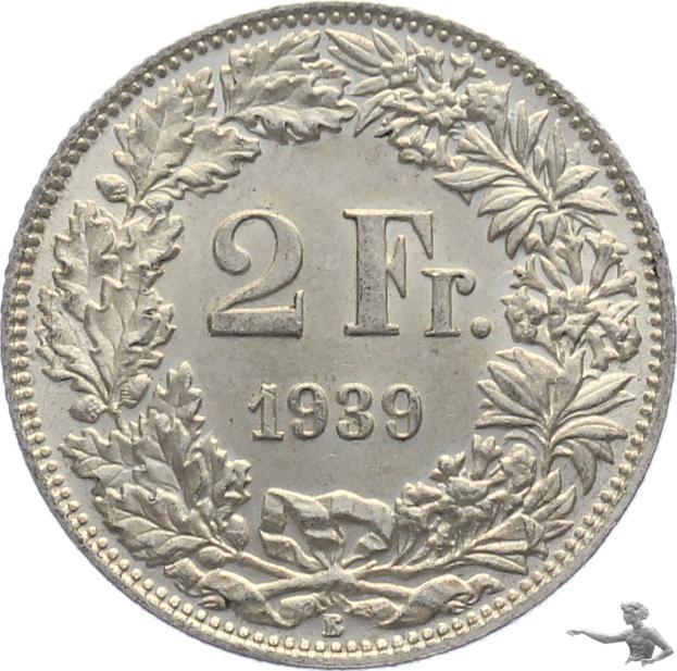 2 Franken 1939 Silber 10 Gramm