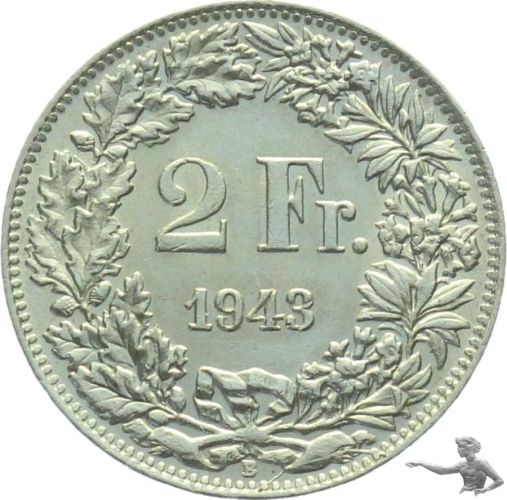2 Franken 1943 B | Fehlprägung Stempelriss