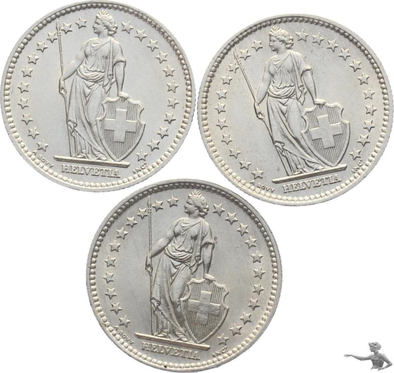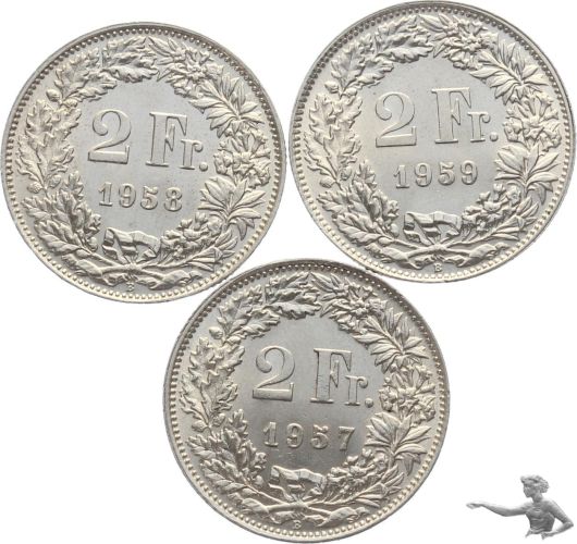 2 Franken 1957 + 1958 + 1959