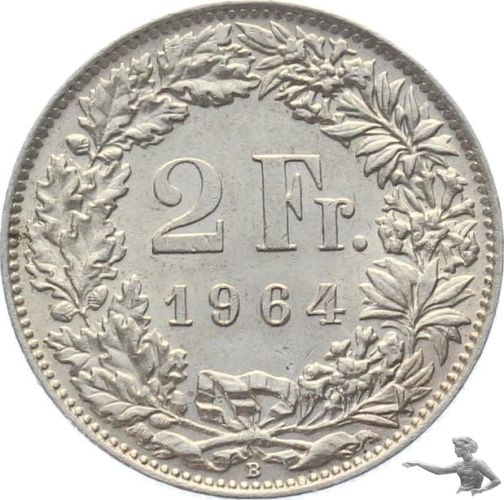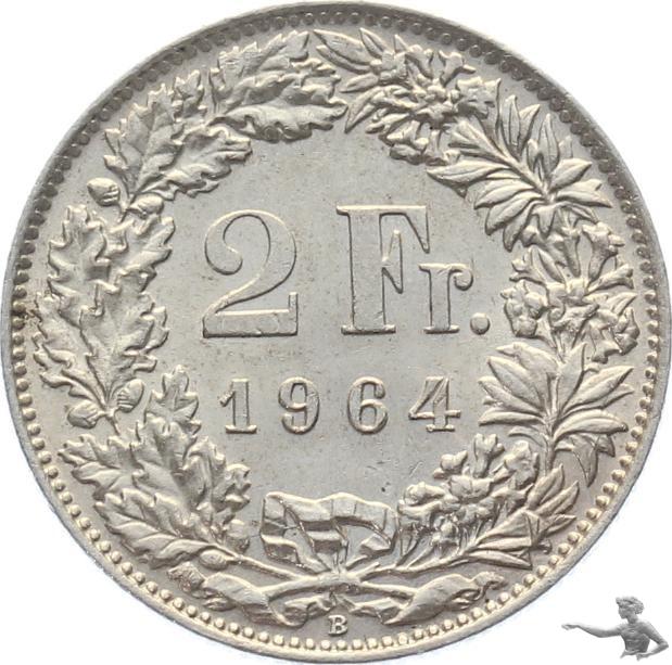2 Franken 1964 B - Silber - gesuchte Qualität
