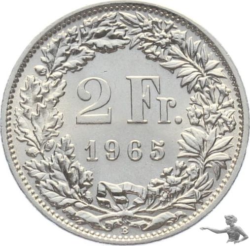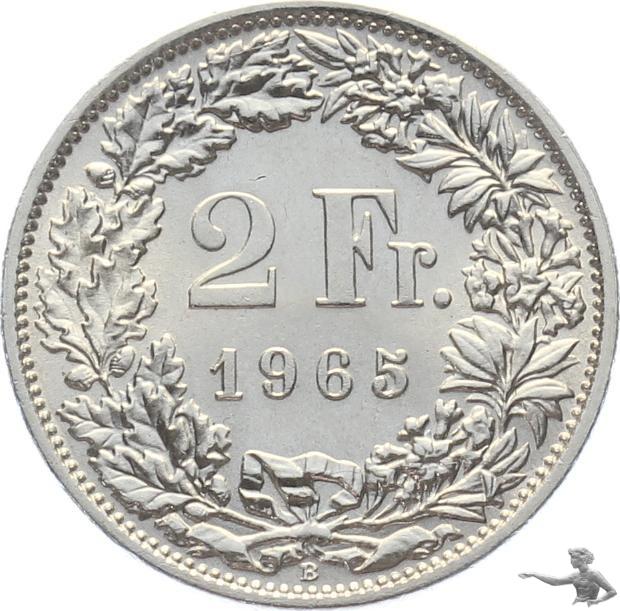 2 Franken 1965 B - Silber - gesuchte Qualität