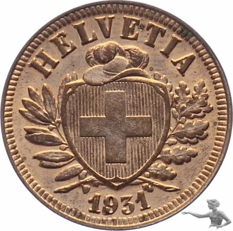 2 Rappen 1931 B TOP STEMPELGLANZ