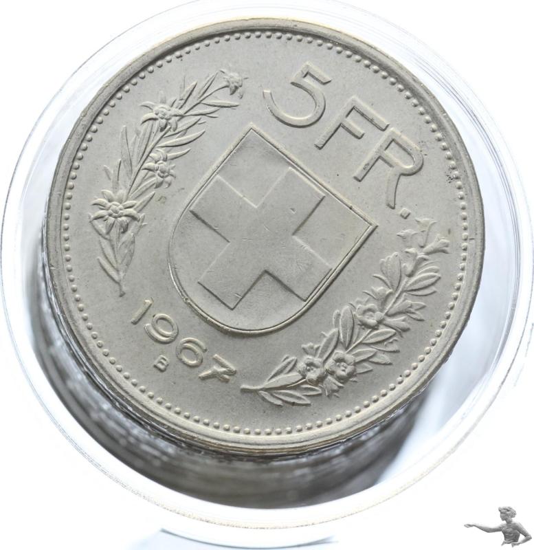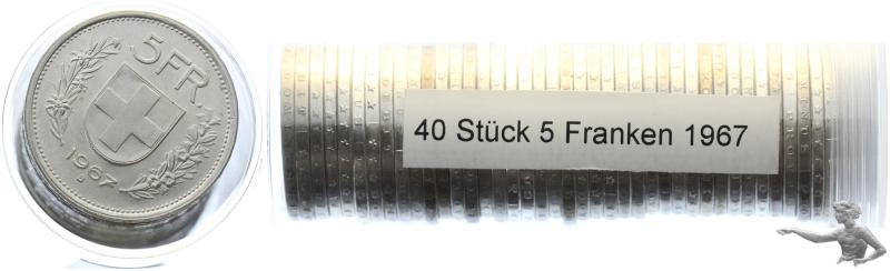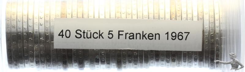 40 Stück 5 Franken 1967 Silber in Tube