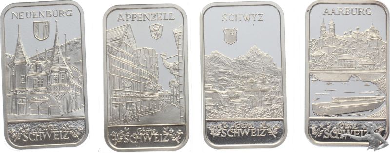 4 Stück - verschiedene 1 Unzen 999 Feinsilber - Schöne Schweiz