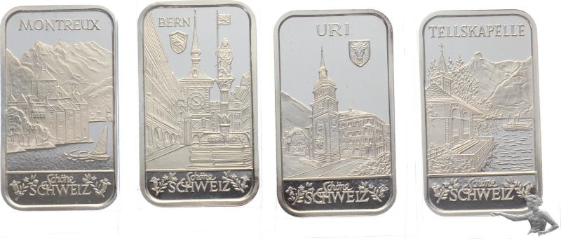 4 Stück - verschiedene 1 Unzen 999 Feinsilber - Schöne Schweiz