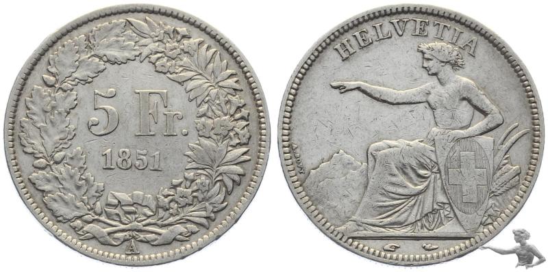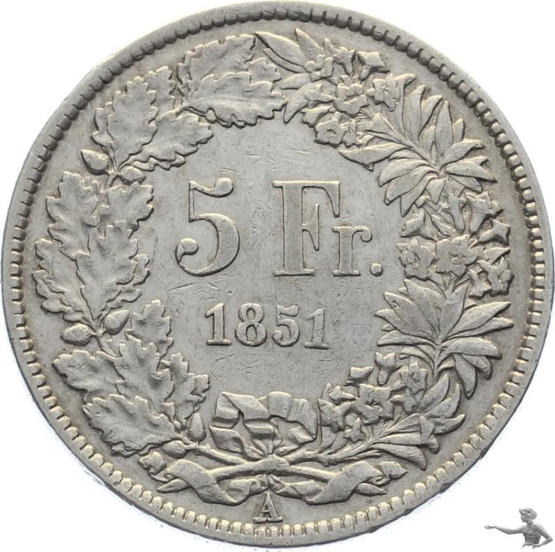5 Franken 1851 A - Sitzende Helvetia