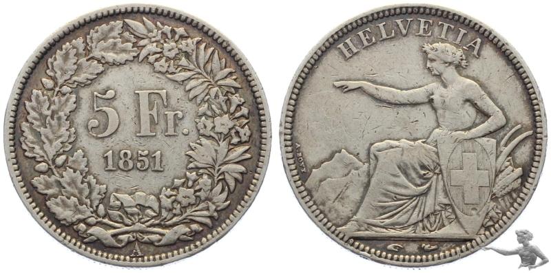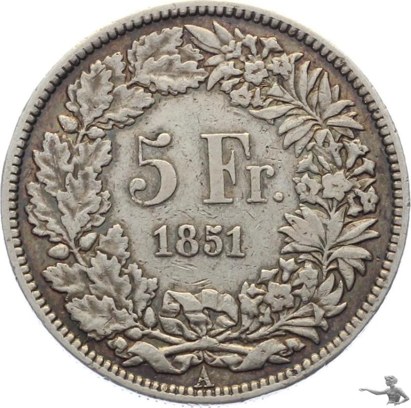5 Franken 1851 A Sitzende Helvetia Silber Grossilbermünze