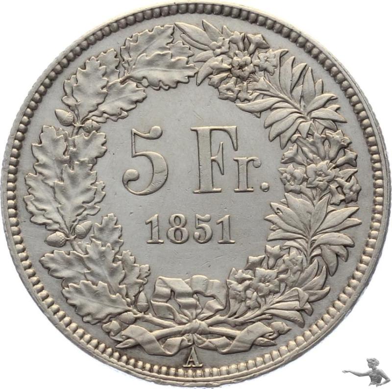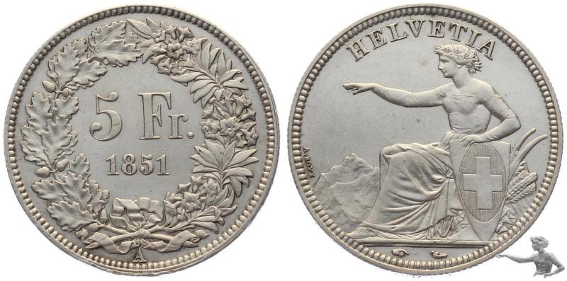 5 Franken 1851 - Eidgenossenschaft Silber Sitzende Helvetia