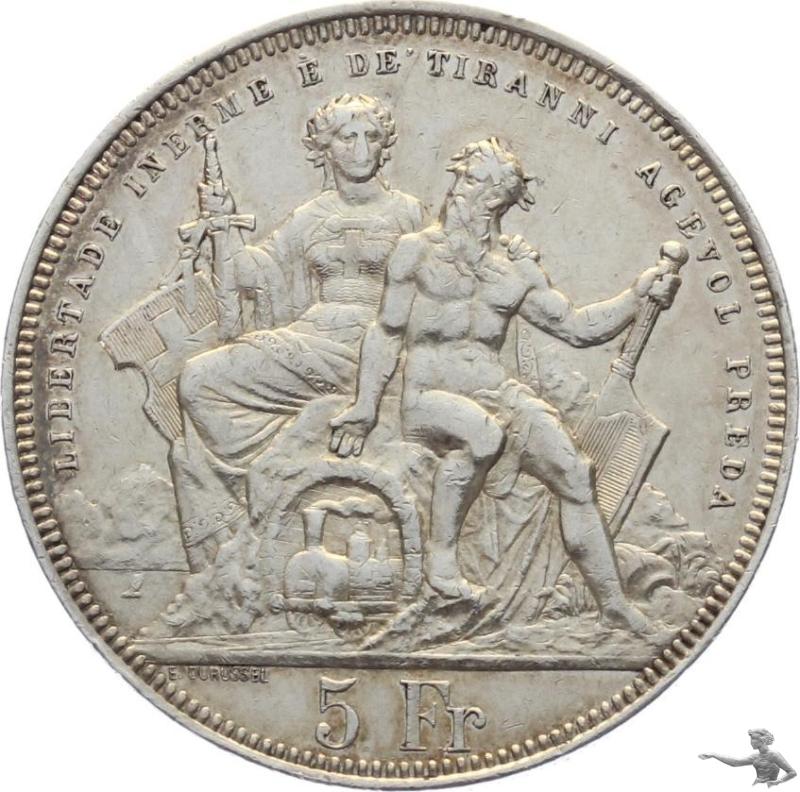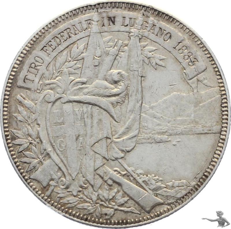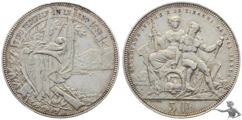 5 Franken 1883 Lugano Schützenfest Silber Grossilbermünze