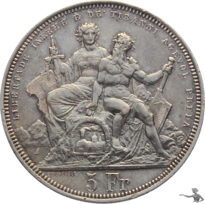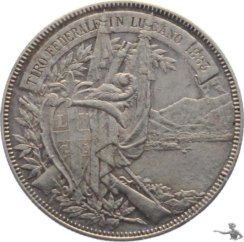 5 Franken 1883 Lugano Schützenfest Silber Grossilbermünze