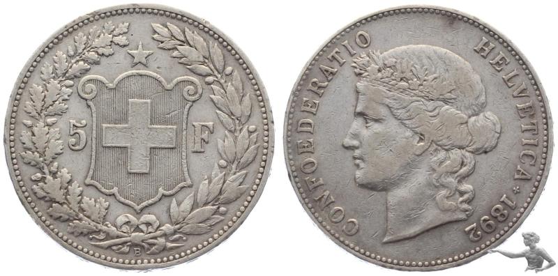 5 Franken 1892 - Eidgenossenschaft Silber