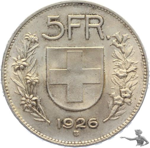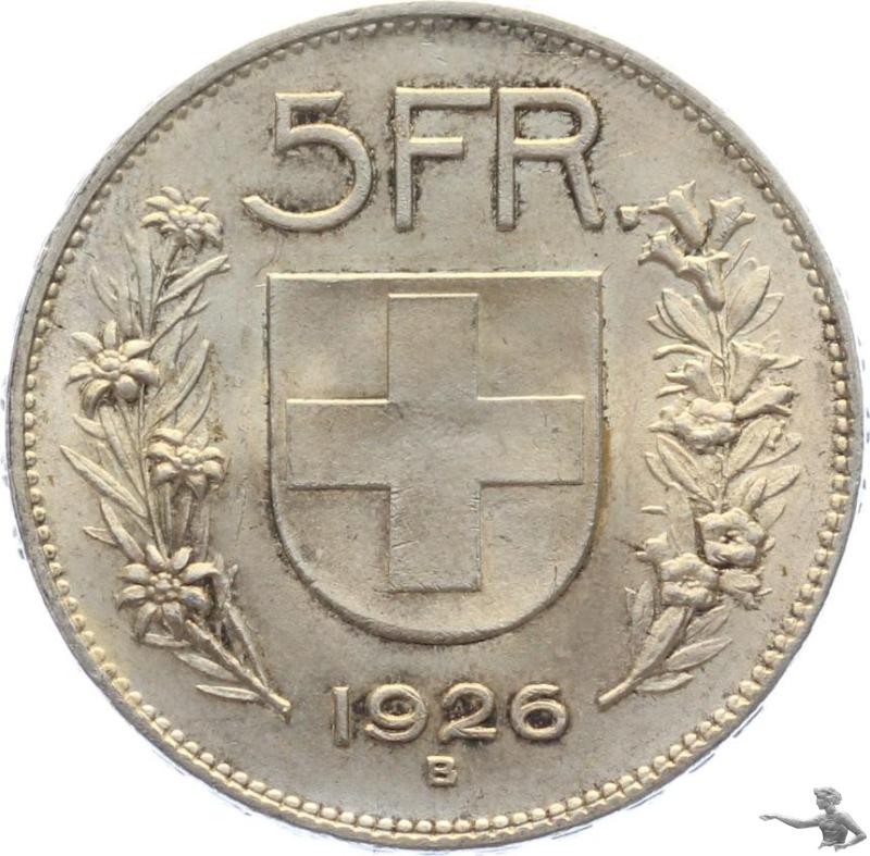 5 Franken 1926 B Alphirte in hervorragender Qualität