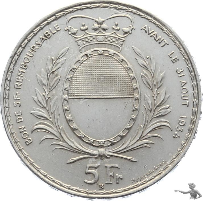 5 Franken 1934 B Schützenfest Fribourg Silber