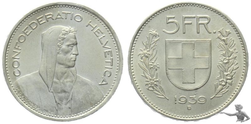 5 Franken 1939 B | Alphirte | Fast unzirkuliertes Exemplar!| Beinahe wie neu!