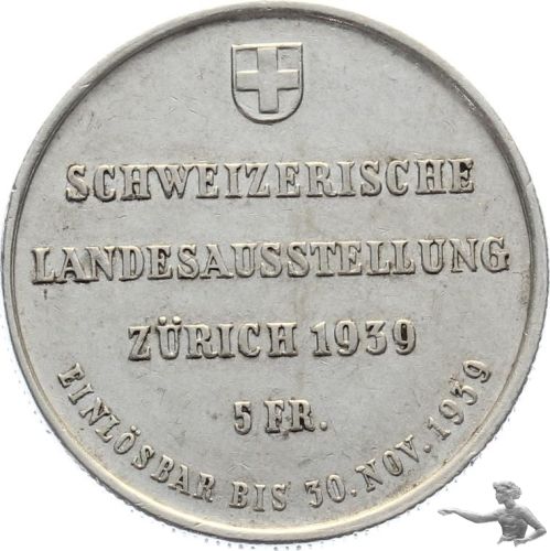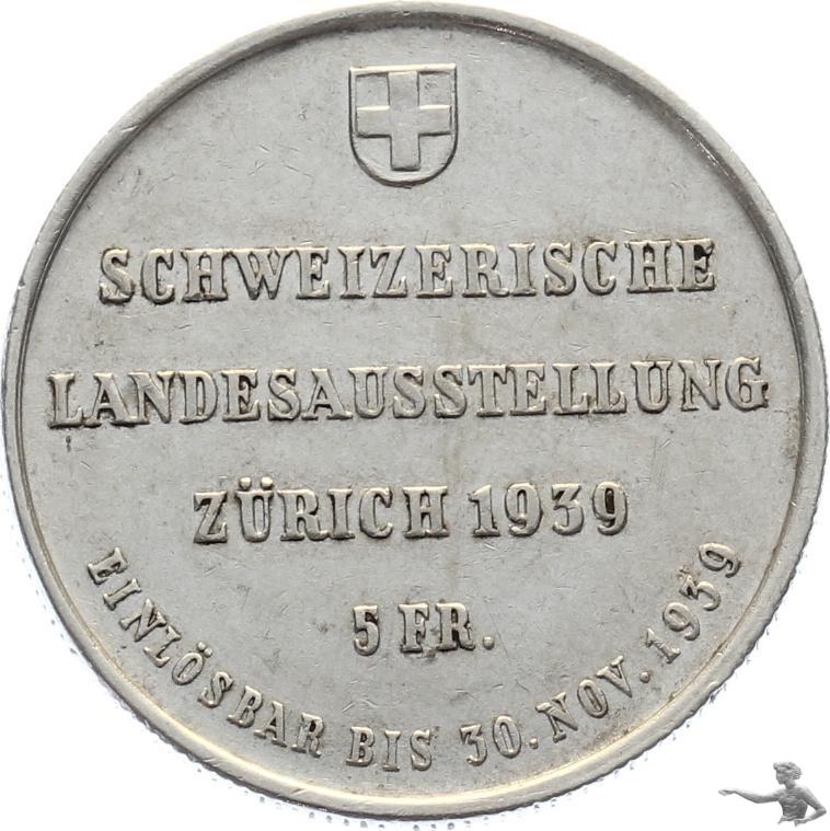 5 Franken 1939 B Landesausstellung Zürich Silber