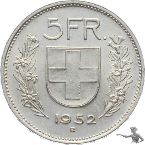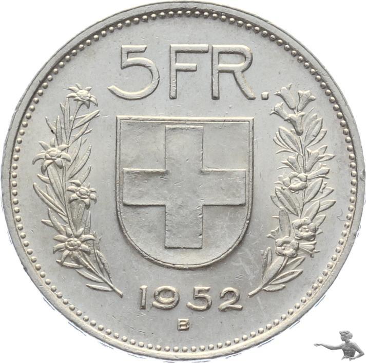 5 Franken 1952 B - Silber - gesuchte Qualität
