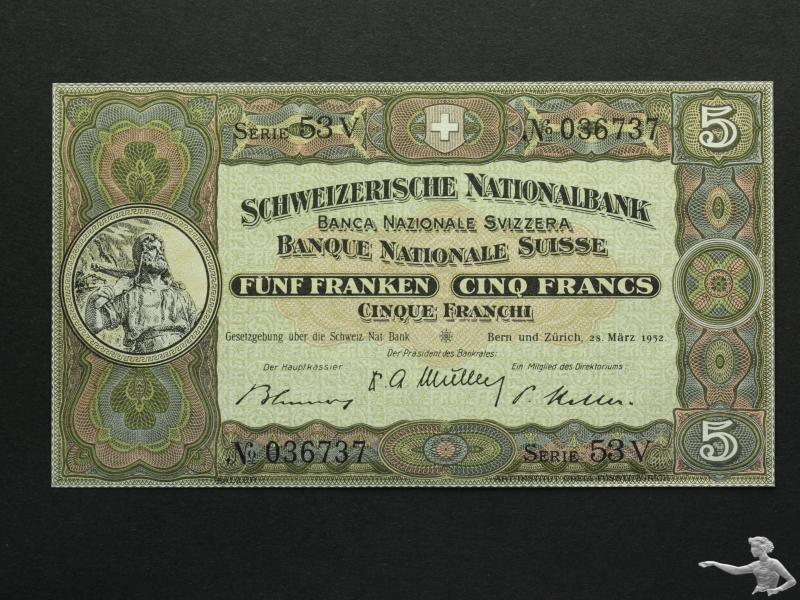 5 Franken 1952 ungefaltet (036737)