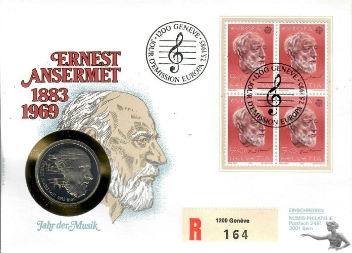 5 Franken 1983 Ernest Ansermet, stempelglanz, Numisbrief