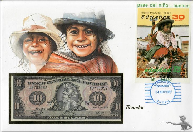 Banknotenbrief Ecuador 10 Sucres 1986