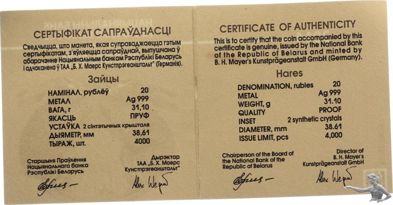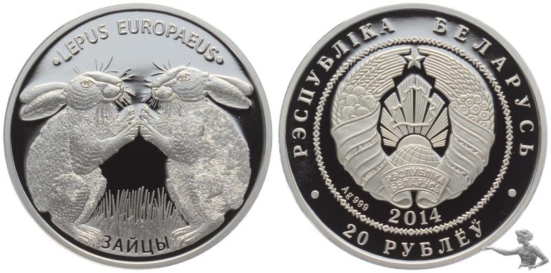 Belarus (Weissrussland) 20 Rubel 2014 Hase - 1 Unze Feinsilber 999