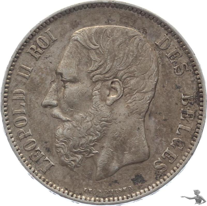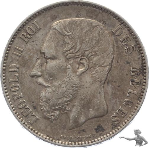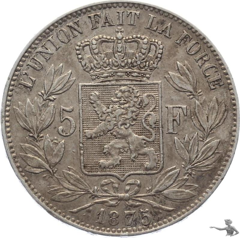 Belgien 5 Francs 1875 Leopold II. Grosssilbermünze