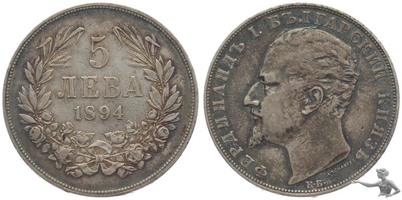 Bulgarien 5 Lewa 1894 KB - Grosssilbermünze