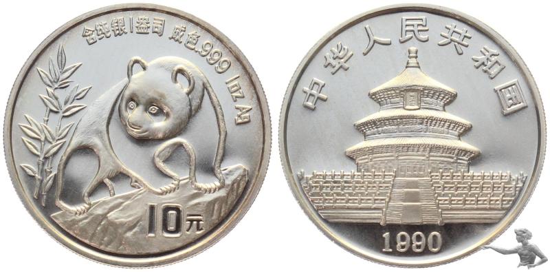 China 10 Yuan 1990 - 1 Unze 999 Feinsilber -Panda Top Stempelglanz!!!
