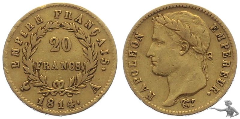 Frankreich 20 Francs 1814 Paris, Napoleon Empereur, Gold
