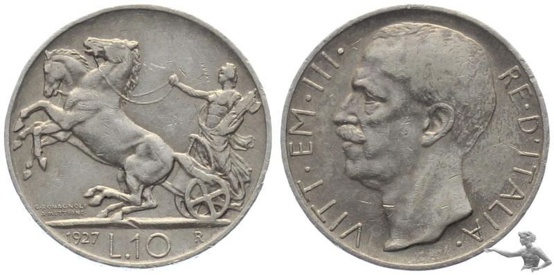 Italien 10 Lire 1927 Vittorio Emanuele III Silber