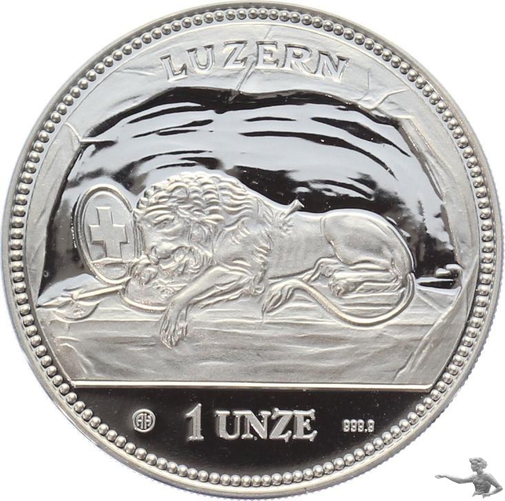 Luzern 1988 Löwendenkmal & sitzende Helvetia - 1 Unze 999 Feinsilber