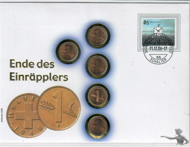 Numisbrief 1 Rappen Ende des Einräpplers