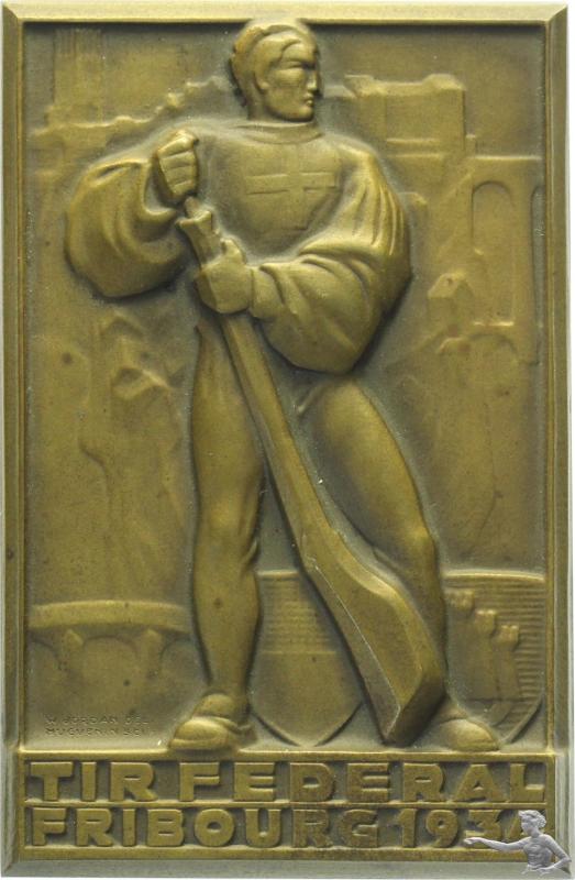 Schützenmedaille 1934 Fribourg Bronze Stehender Schütze