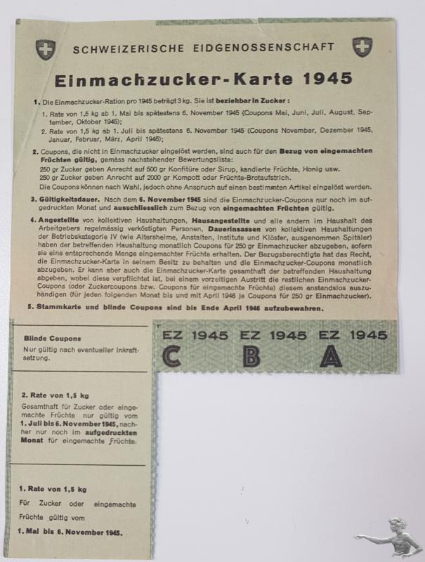 Schweizerische Eidgenossenschaft Einmachzucker - Karte 1945