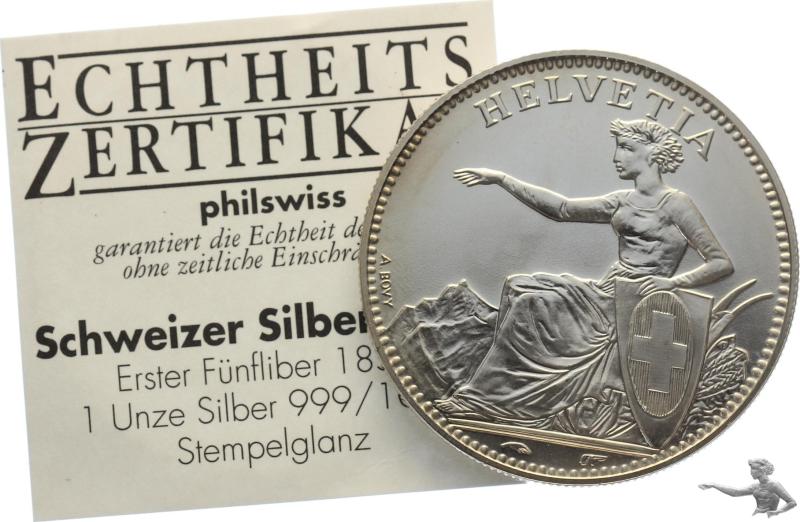 Sitzende Helvetia - 1 Unze Feinsilber 999 mit Zertifikat