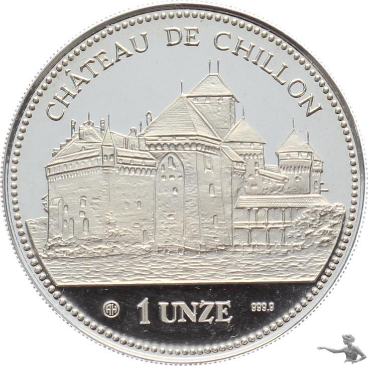Sitzende Helvetia & Chateau Chillon - 1 Unze 999 Feinsilber